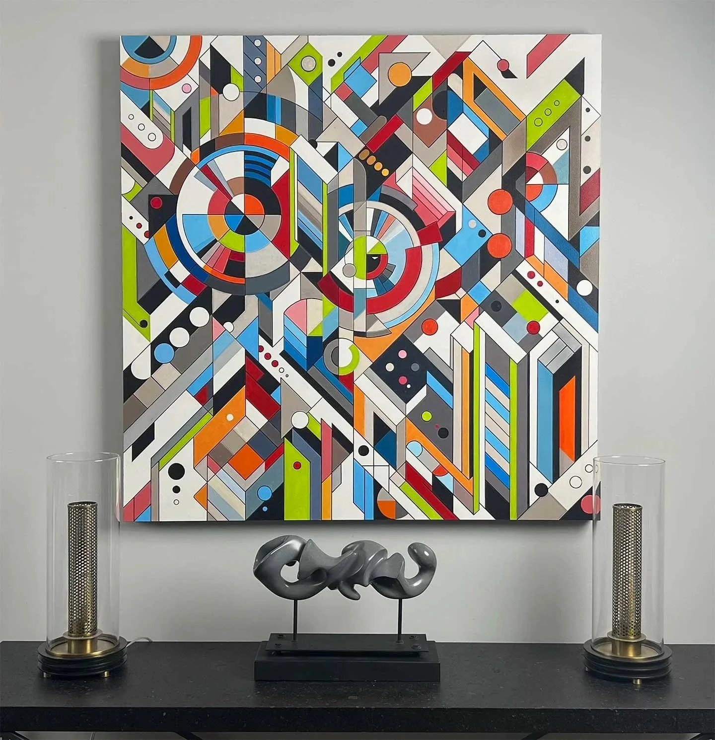 Acrylic and metal on wood. 36H x 36W Opposing Forces - CBL Building (URB1)